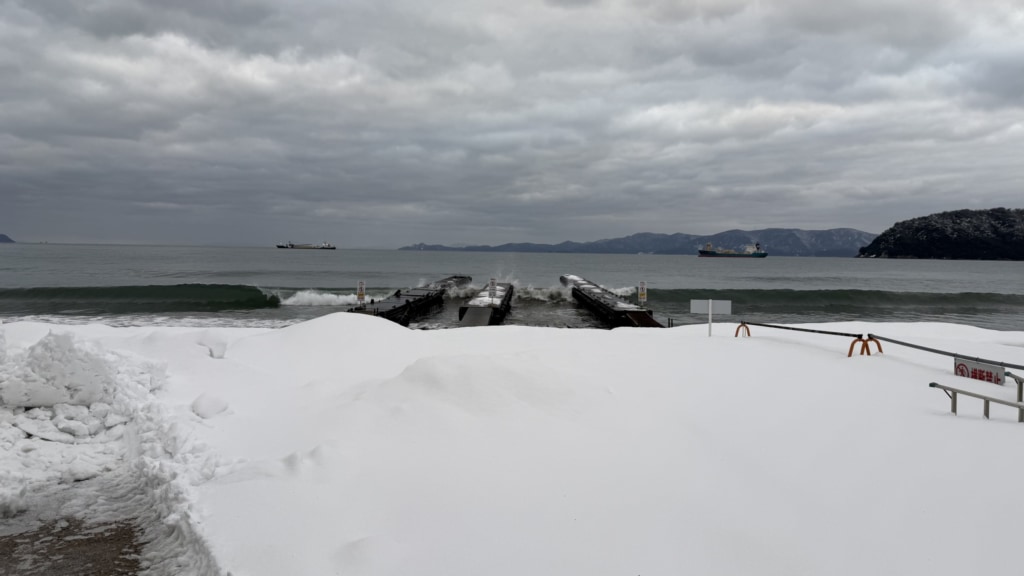 冠島周辺では、北西の風8メートルで波は3.1メートルとなっております。