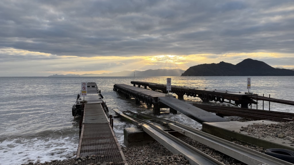- 陸揚げ作業がスムーズに行えるように、桟橋到着の10分前には無線や携帯電話でご連絡下さい。